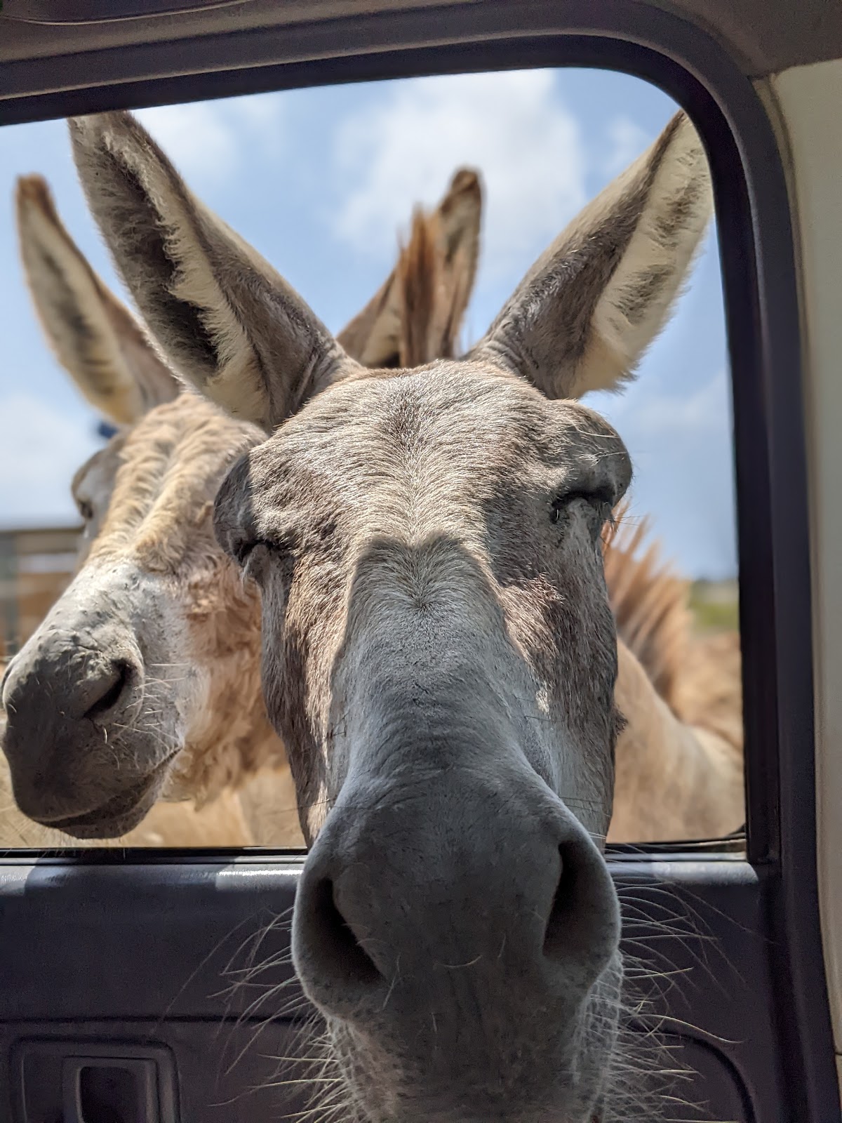 Hundreds of donkeys roam the gated facility, food provided largely through donations. All animals are medically cared for and either spayed or neutered or kept in separate pens so as not to repopulate.