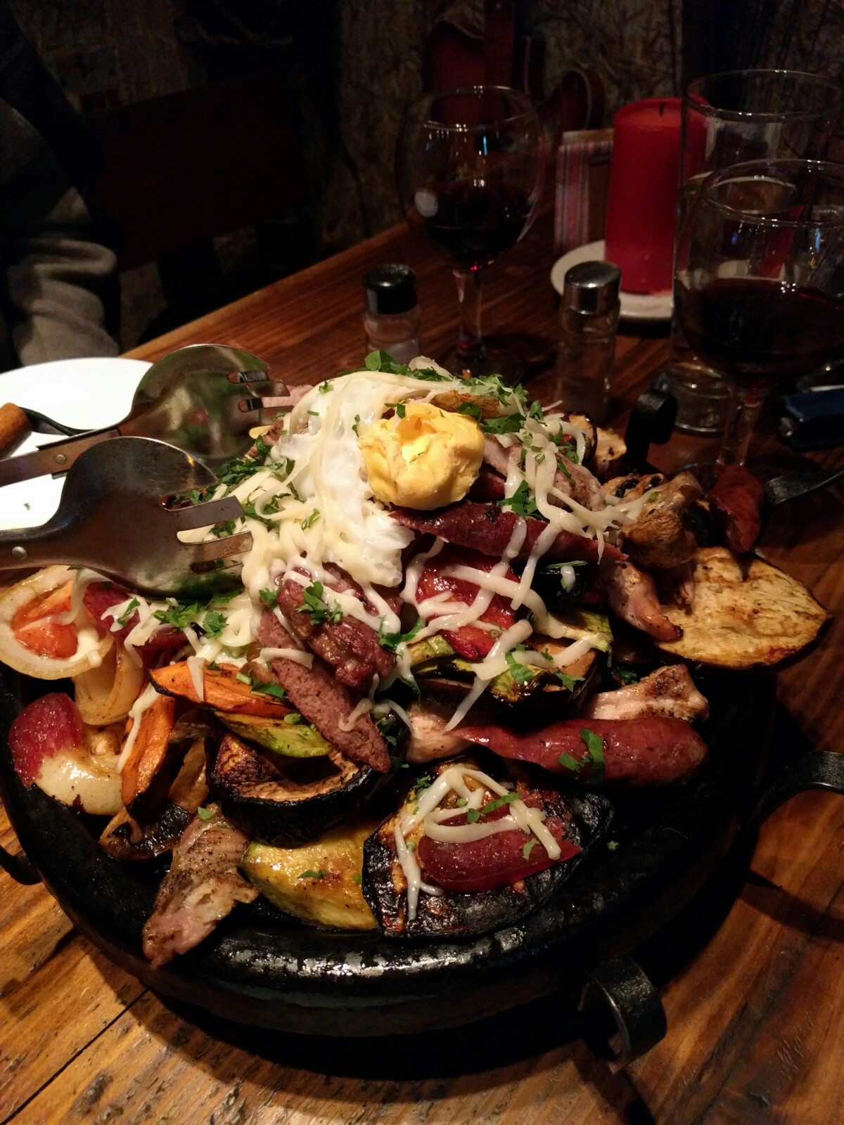 Local Cuisine. Lots of meat, on a stick or a rod or a big ole’ platter. Accompanied with grilled vegetables. Our favorite dish / food was a ‘sache’. Mixed grilled meat and vegetables served on large, heavy and HOT clay tile, supported by a metal stand, sizzling as it is placed on the table.